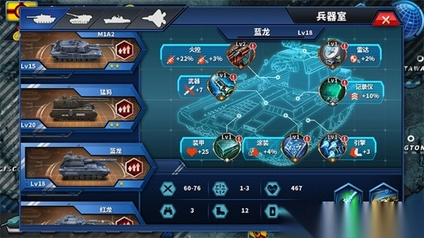 有很多人认为mgm需要优先培养,但是我认为,坦克的连击和自卫能力,是炮兵的很多倍,局限性更小。但是对于0元党,建议先强化T14或M1A2到3星并大力强化配件,保证可以通过6-2获得蓝龙。