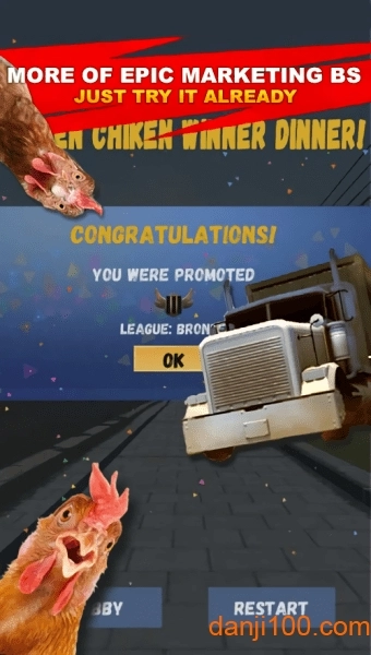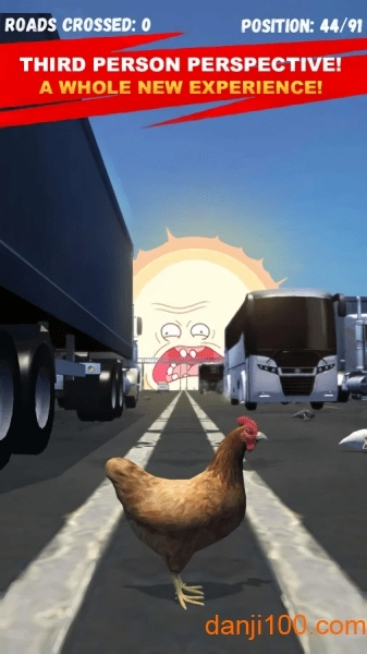 3.继续前进,穿越更多的道路,完成游戏挑战,成为最后一个幸存的鸡。