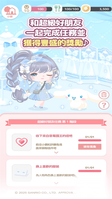《三丽鸥明星的微笑小镇》国际服SweetDays,是一款极具治愈感的可爱风格模拟经营游戏。玩家将受邀踏入Sanrio角色的奇妙世界,在微笑小镇中与Hello Kitty、美乐蒂、双星仙子、布丁狗、大耳狗喜拿等明星角色共同生活。这些角色或许会向你求助,而你的任务便是通过与它们交谈,帮其解决问题,同时还能收获奖励。 游戏主打装扮玩法,你能为喜爱的角色搭配可爱服饰与配件,还能将自己的房间装点得更加萌趣。不仅如此,在《三丽鸥明星的微笑小镇》国际服中,你还可以拜访同样钟情此游戏的邻居,与他们分享你的兴趣爱好!