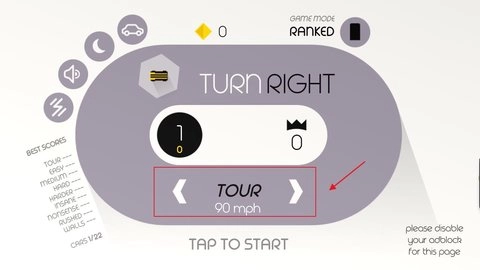 3、通过点击方向键能够切换赛车的车速,车速越高,游戏难度越大。