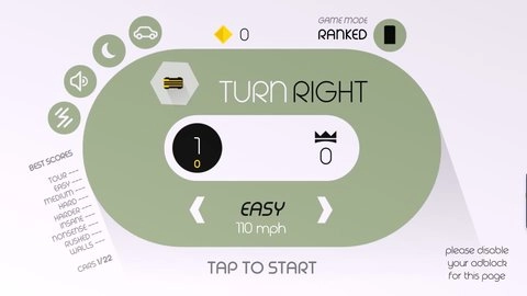 《向右转》游戏(Turn Right)是一款创意十足的指尖赛车竞速手游。它以清新简约的美术风格呈现,玩法轻松,极易上手,能让玩家收获极致的操控体验与紧张刺激的竞速快感。这款手游不仅支持本地多人对战,方便与好友同屏一较高下,还设有单人模式,玩家可借此挑战自身极限,尽情感受赛车漂移带来的纯粹乐趣。