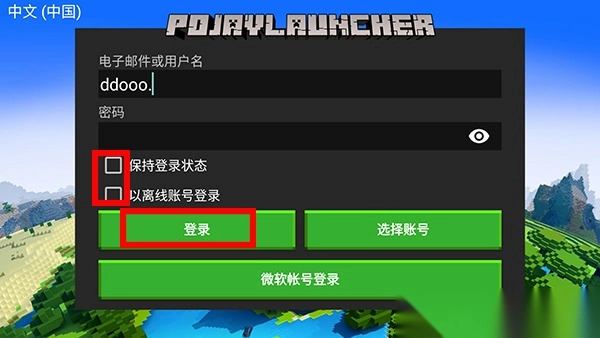 2、进入游戏后随意输入邮箱无需填写密码,勾选下方的两个选项,然后以离线方式登录,也可以选择使用微软账号登录;