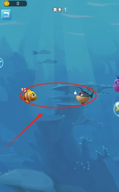 2、点击移动,既要吞小鱼又要躲大鱼,稍不留神就会被鲸鱼一口闷。