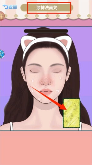 2、然后点击下方的工具,对脸部涂抹洗面奶。