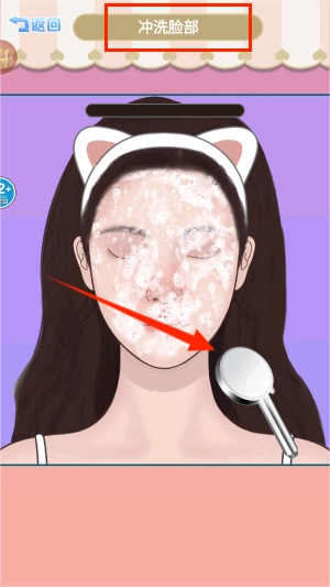 3、最后,点击下方的花洒,对脸部进行冲洗。