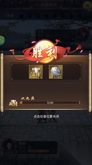 6、成功击败所有敌人即可获胜,并获得政绩和银币。