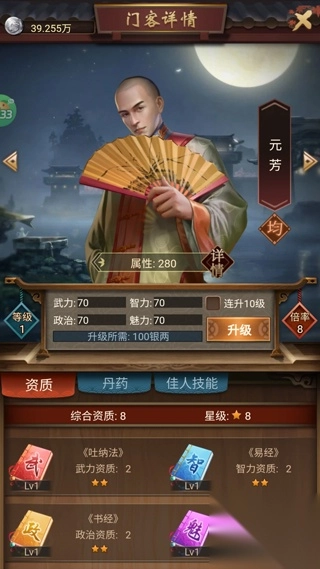 装备与书籍: 为门客配备装备和书籍,进一步提升其属性和能力。