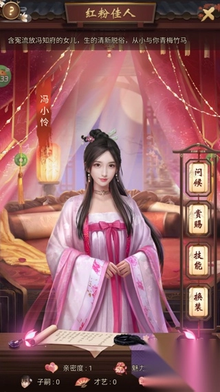红颜互动: 玩家可以与红颜进行互动,例如赠送礼物、聊天等,提升亲密度。亲密度会影响红颜对玩家的支持和提供的属性加成。
