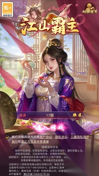 江山霸主折扣版,一款超棒的卡牌养成策略手游。这个版本充值仅需 0.1 折,创角就送 648 代金券,更有海量道具礼包免费拿,助你开局领先一步。江山霸主手游以明清时代为背景,融合了卡牌、养成策略与竞技等多种玩法。在游戏里,玩家将重返古代,化身初入仕途的年轻人。你既能广招贤才、寻觅知音,也能专心经营、处理政务,还能呼朋唤友、征战扩疆,玩法全由你定,自由度超高。此外,游戏内精心设计了众多美女红颜,她们外貌性格各不相同,且拥有特殊技能,在玩家处理政务或参与战斗时,能提供额外增益效果。感兴趣的小伙伴别再犹豫,赶紧下载体验吧!