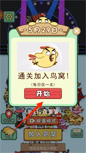 1. 当进入主界面时,点击“加入鸟窝”按钮,此时系统会跳转至地区选择页面。