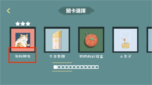 2、在主题选择界面挑选"我的朋友"关卡,进入后会看到各种歪斜的猫咪卡通贴纸散布在屏幕上。