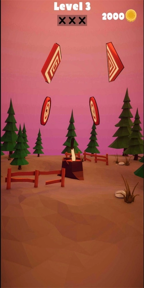 2、精准把握弹射角度与力度控制,巧妙利用场景反射点,通过收集特殊道具解锁隐藏飞刀,预判障碍物移动提前调整策略,为玩家带来沉浸式射击体验。