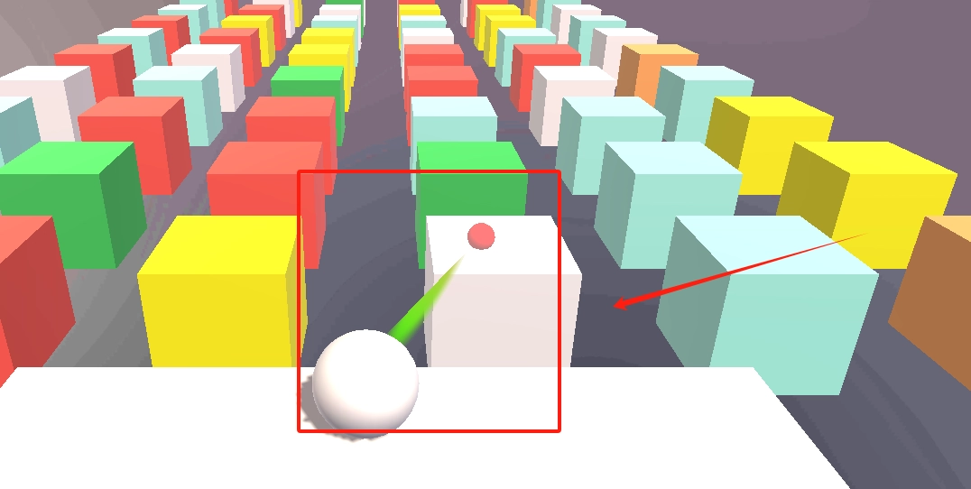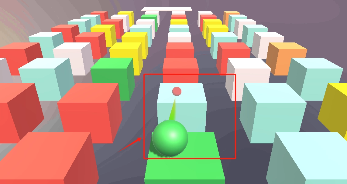 3、绿色球体在绿色方块上,按红框提示控制球体移动到目标位置。