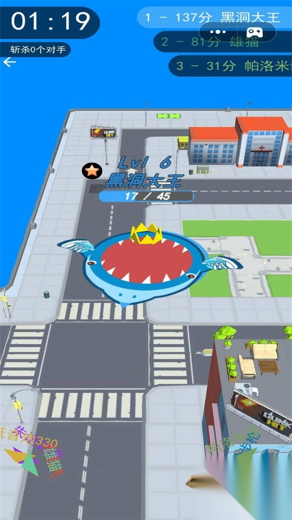 黑洞吞噬进化大战这款游戏,是一款极具魔性趣味的休闲之作。在游戏里,玩家会化身一个起初微不足道的黑洞,依靠吞噬街道上的各种物体来逐步壮大自己。随着黑洞体积的不断增加,能够吞噬的物体也愈发庞大,到最后,甚至可以撕裂时空,将整座城市都吞噬殆尽,让玩家尽情感受那种解压又充满破坏的快感,玩起来简直让人停不下来。