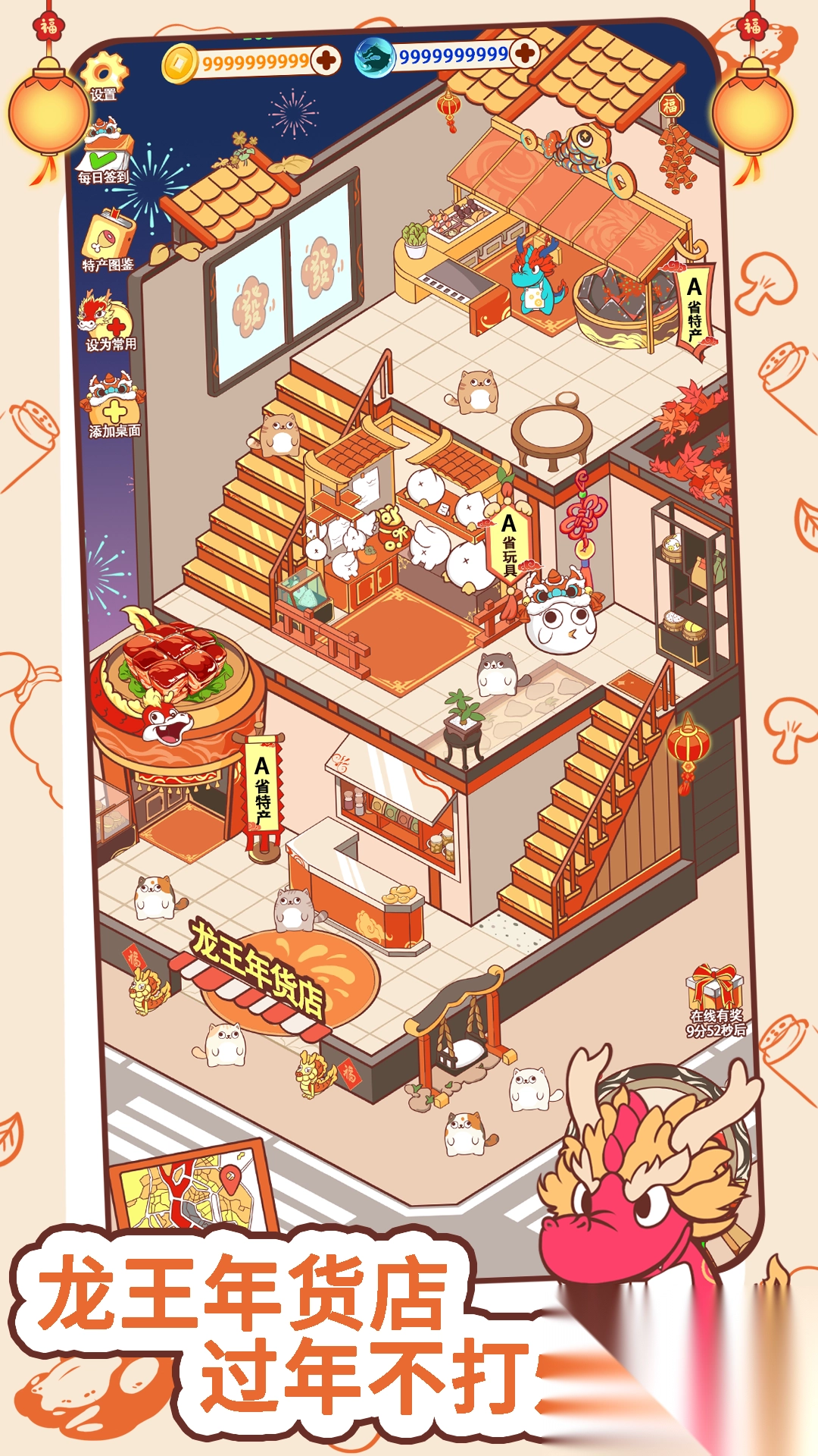 3、围绕年货特产这一主题,巧妙融入传统文化元素,即便采用挂机放置的经营模式,店铺也能不断发展壮大,使玩家在经营过程中领略独特的文化魅力。