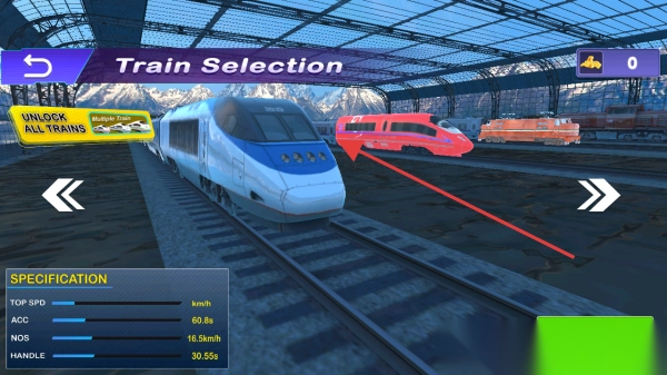 2、在火车选择界面,挑选箭头指向的列车(或解锁更多火车),点击【Next】,进入驾驶准备阶段。