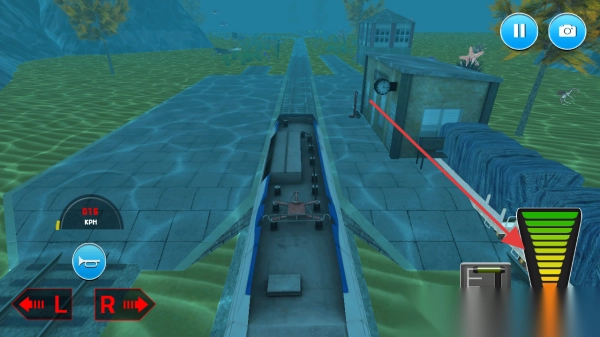 3、水下驾驶时,操作右侧控制杆调节速度,配合左侧按键,驾驶火车在水下轨道行驶,完成任务。