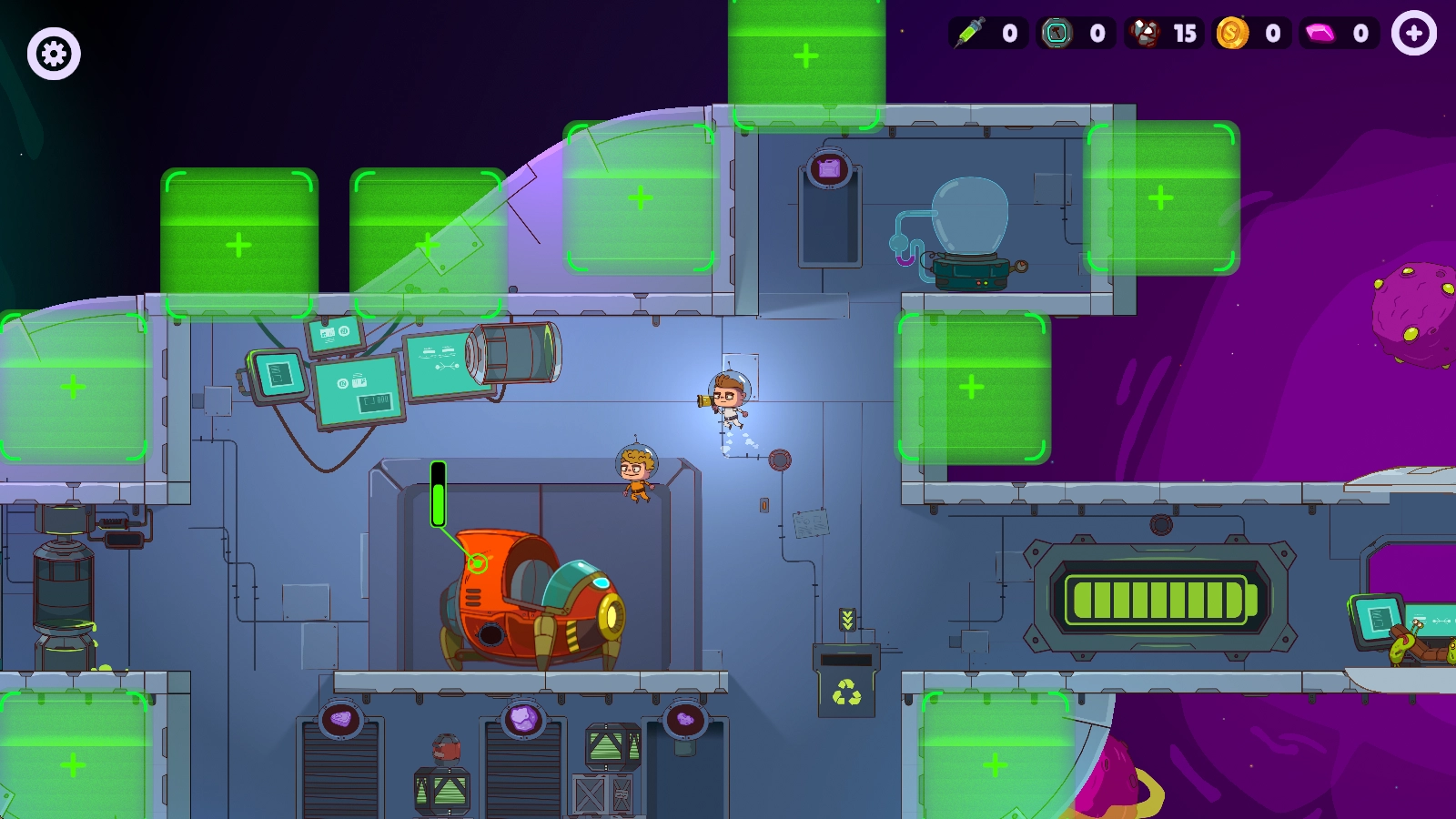 2、通过收集资源持续扩充你的飞船,逐步健全飞船上的各类设施,以便你能在外太空长久地旅行。