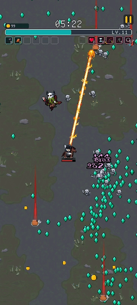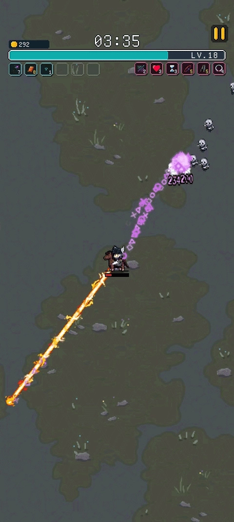 2、尝试尽可能摆脱小兵的围堵,一旦陷入众多小兵的包围圈,血量便会迅速减少,导致游戏失败。重点攻击位于两角的大兵,如此便能获取神秘力量。