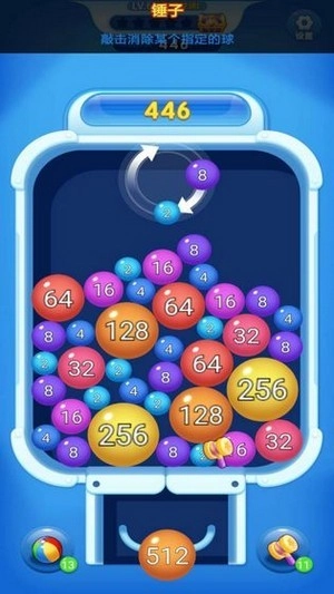 2、玩家需要发射带有数字的小球,然后合成它们来完成游戏任务。