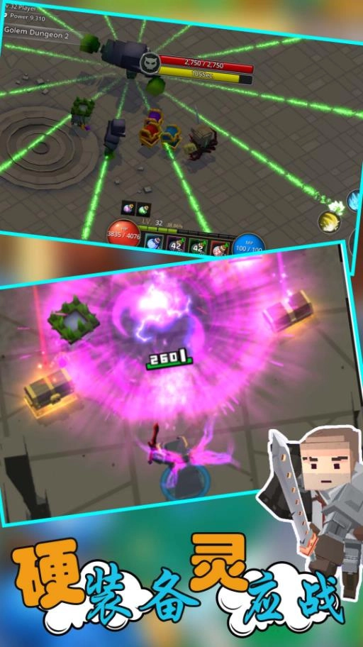 2、角色的技能也可以根据战场需要随心所欲的搭配,3D的像素风,丰富多样的场景。