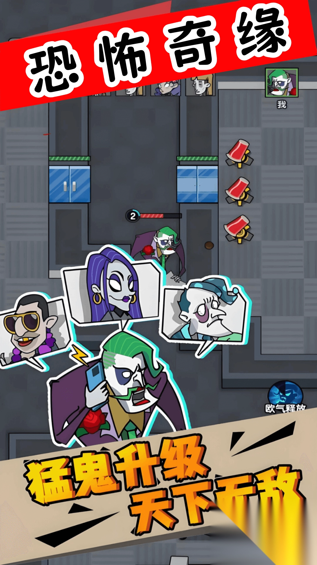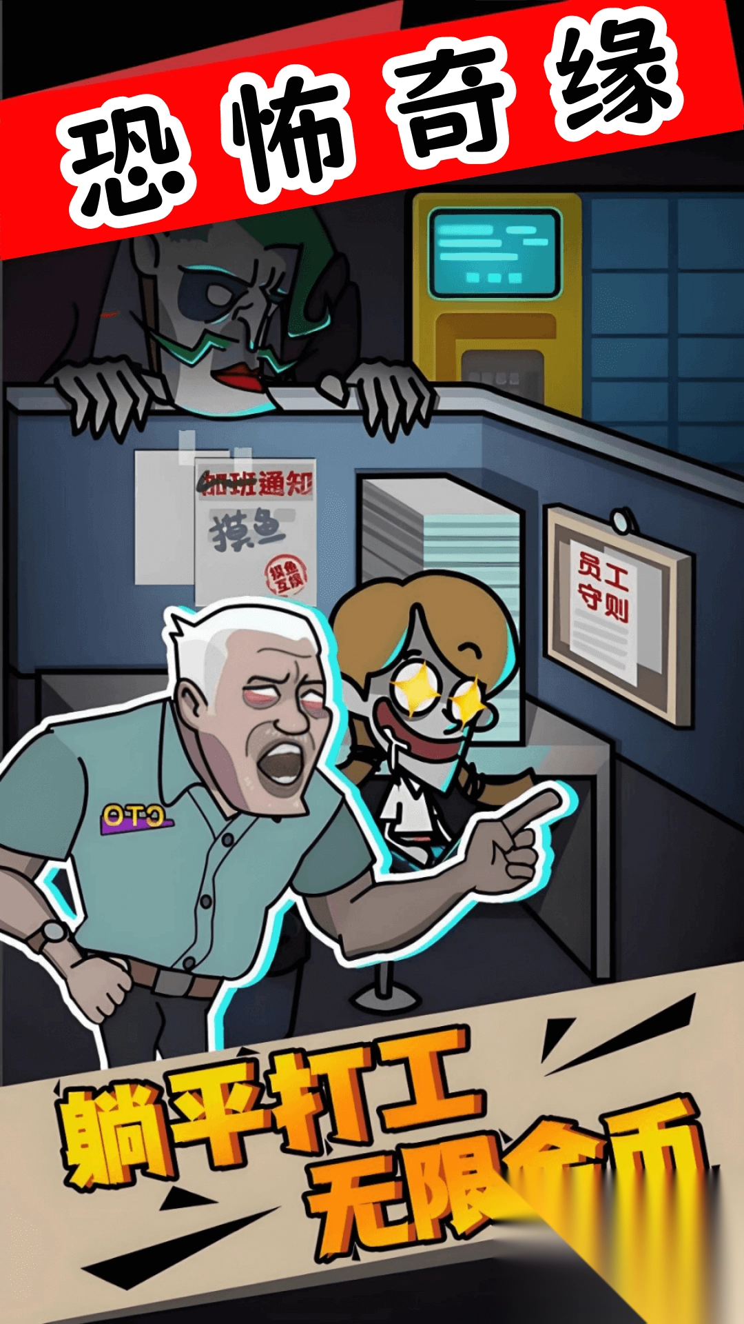 2.办公室场景、老板鬼怪化的形象,还有各类防御武器,其设计兼具诡异与可爱,营造出别具一格的视觉体验。