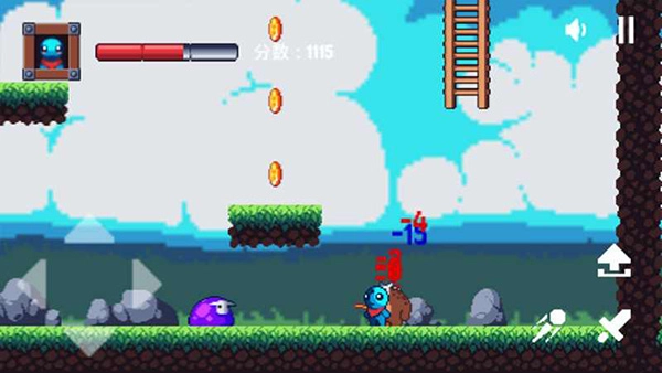 7、这种紫色怪物是会远程发射子弹球攻击的,需要快速击败它,不然会损失非常多的血量,继续冒险吧!