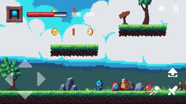 憨憨大冒险是一款简约的横板动作闯关小游戏。玩家会化身可爱的小憨憨,在游戏里展开各类闯关,开启一段全新的冒险征程。不过在冒险途中,并非总是顺顺利利,还会遭遇形形色色的怪物,像近身攻击的大棕熊、远程攻击的紫色小怪等等。别畏惧,凭借手中武器将它们打败,如此不仅能顺利通关,还能获取更多分数。记得收集场景中的金币与食物,这样就能获得更高的评分。