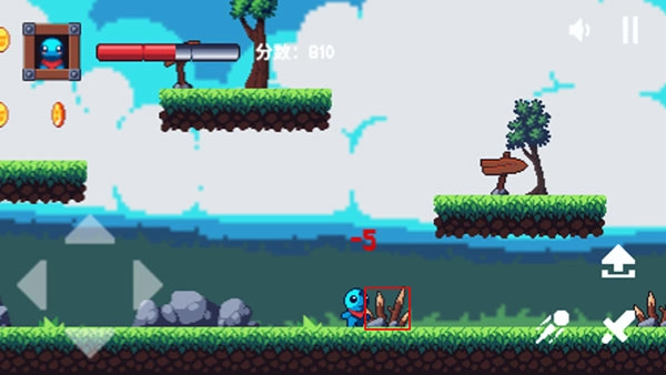 2、点击开始游戏,左边按钮为移动角色,右边可以跳跃、远程射击、近身攻击;