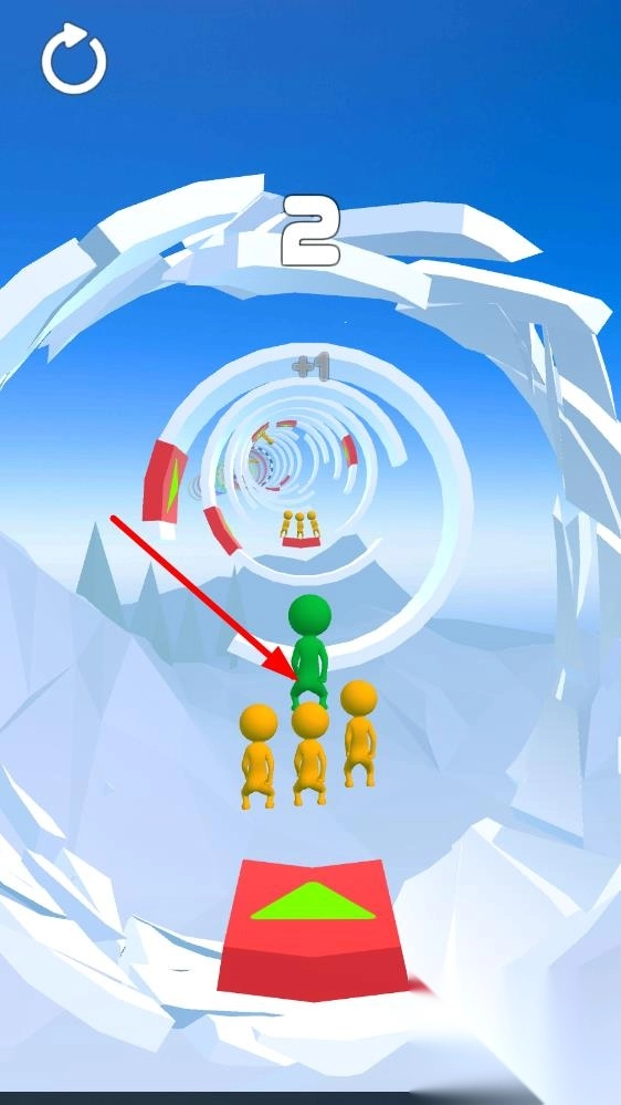 2、跳跃过程中收集绿色小人图标,每收集5个小人可激活「群体跳跃」技能,跳跃距离提升50%,注意躲避红色障碍圆环。
