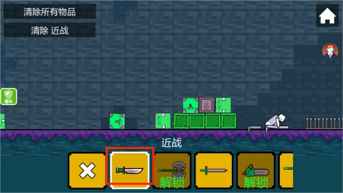 1、下方有一些工具栏,点击就可以使用,宝剑和大刀,可以用作近战。