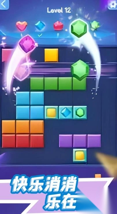 2、鲜艳多彩的方块设计,每个方块拥有独特颜色和形状,随着关卡深入,游戏背景随之变化。