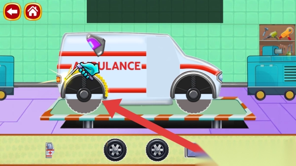 3、玩家以维修人员的角色,对救护车(“AMBULANCE”)开展维修工作,比如更换轮胎等。这一过程能让玩家体验车辆维修流程,感受经营维修业务的休闲乐趣。