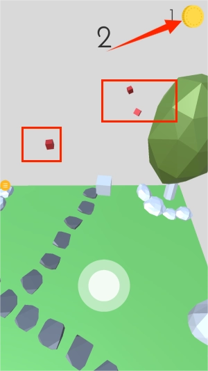 2、你需要通过下方的按钮控制方块移动,金色代表金币,靠近它可以收获。