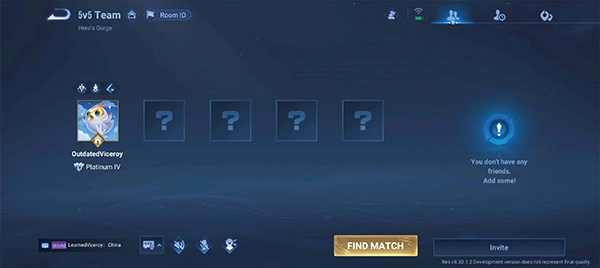 3、首先我们选择5v5进入游戏,点击开始匹配,当我们匹配到玩家的时候可以直接进入房间;