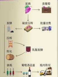 图中绿色表明收获时间,浅土黄色破皮压榨、红色发酵、黄色压榨、棕色陈化、深绿色装瓶、灰色葡萄酒鉴赏。这些都是加工酿造环节移步下个章节