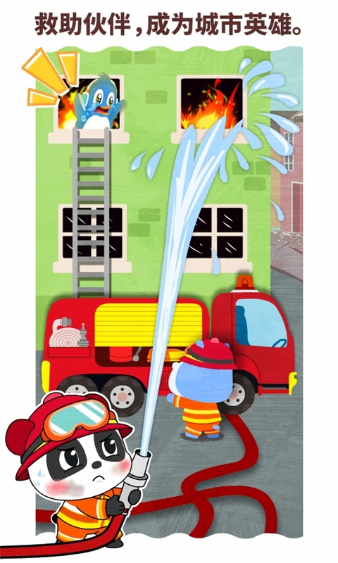 驾驶消防车,扑灭民宅大火,拯救被困的小伙伴;