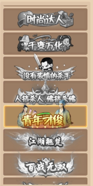 成就称号:初入江湖,成群结队,广结善缘,兢兢业业,时尚达人,千变万化,没有表情的杀手,人挡杀人-佛挡杀佛,青年才俊,江湖翘楚,百战无双,叱咤风云!