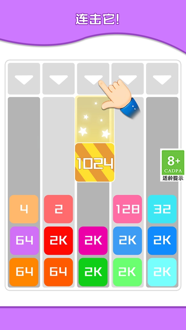 2.观察屏幕上出现的高分方块如1024,点击它即可形成连击消除效果,快速清除大量数字方块。