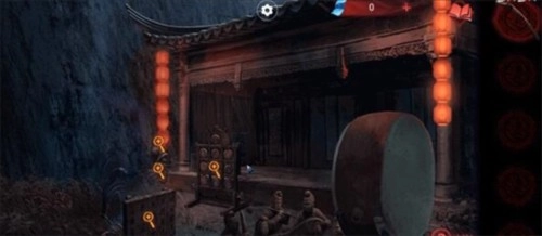 3、去第三个场景,查看线索,点击右边进行敲锣。