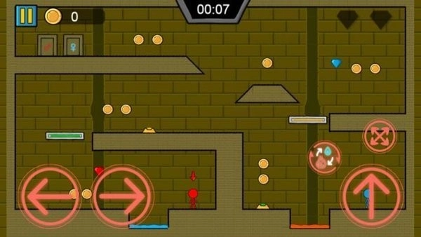 3、独具匠心打造元素互动系统,红人能够自如掌控火焰之力,蓝人则精通寒冰法术。玩家需要巧妙运用角色各自的特性机关,策略意味浓厚。而各类元素相互克制的设定,更是大幅提升了游戏的可玩性。