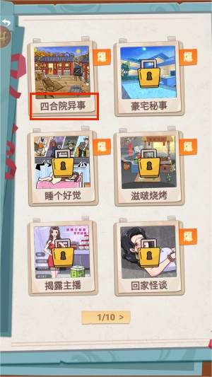 2、在模式选择界面,特色玩法"四合院异事"会带来独特体验。