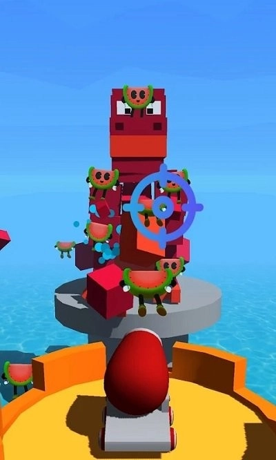 3、面对形似切开的西瓜障碍物时,可利用红色激光攻击效果消除障碍,确保顺利通过关卡。