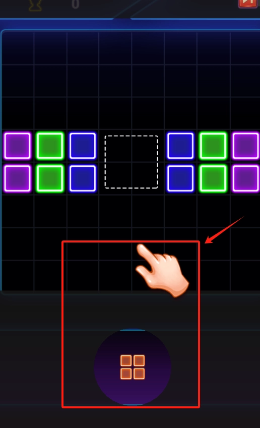 1、点彩色方块下方的蓝色按钮,开始或重置当前拼图关卡。
