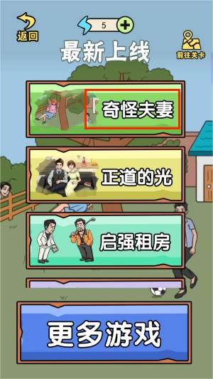 2、在模式选择界面,找到"奇怪夫妻"选项开启独特的双人互动体验。