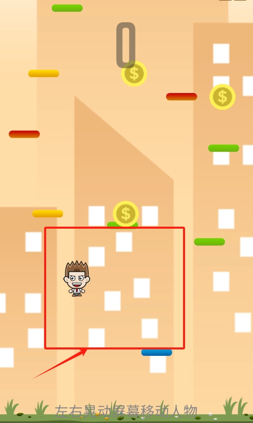 2、当看到小人站在城市建筑前时,只需左右倾斜手机,就能操控他左右移动。过程中要留意躲开天上彩色的障碍物,要是碰到金币,还能获得加分。
