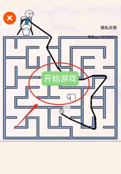 1、点击开始游戏,火柴人被困迷宫,画条路线帮它逃出去。