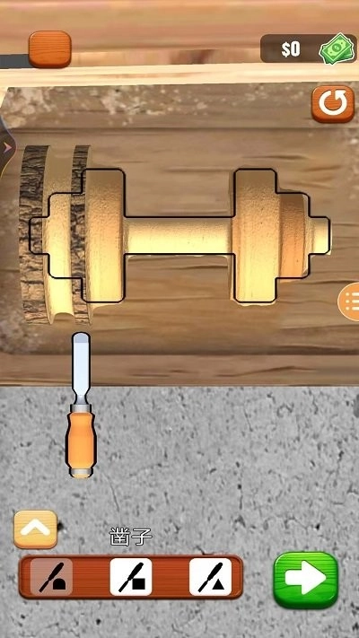 2、滑动手指操控凿子走向,按照提示对木材进行雕刻与塑形,完成基础加工。