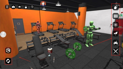 2、左侧重置场景和更换场景,右侧执行射击或破坏操作,点击按钮切换工具或调整视角。