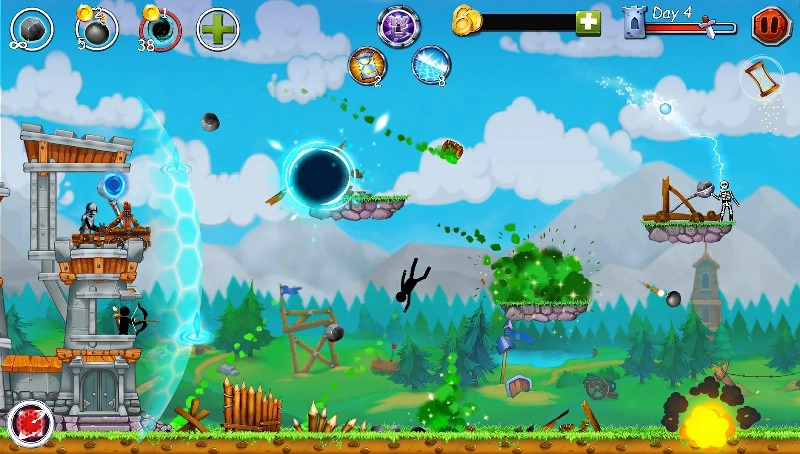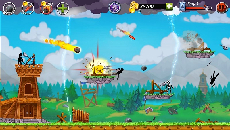 3、需协助火柴人,借助城堡塔尖的弹射器守卫自身城堡,持续展现自我。
